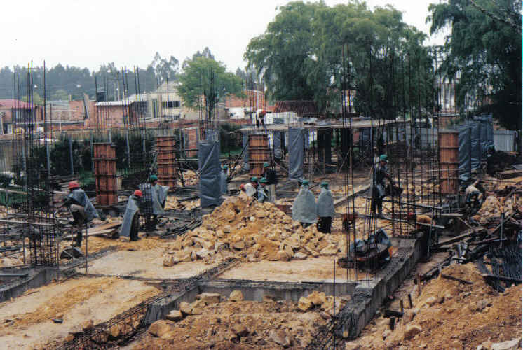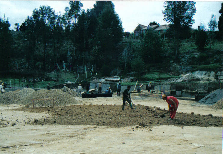 En agosto de 1990. Monseñor Rubén Buitrago, obispo de la diócesis, los seminaristas, algunas autoridades del Municipio y los miembros del Movimiento de los Focolares, celebran la “posa de la primera piedra”.